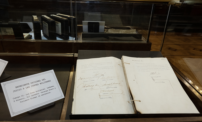 Al finalizar la ceremonia, los invitados pudieron recorrer el Salón de los Derechos Humanos, donde se proyectó un video alusivo y se exhibieron documentos del expediente y del material fílmico original: un registro con más de 500 horas de grabaciones que, por su valor patrimonial, fue sometido a un proceso de preservación para ser conservado a largo plazo.