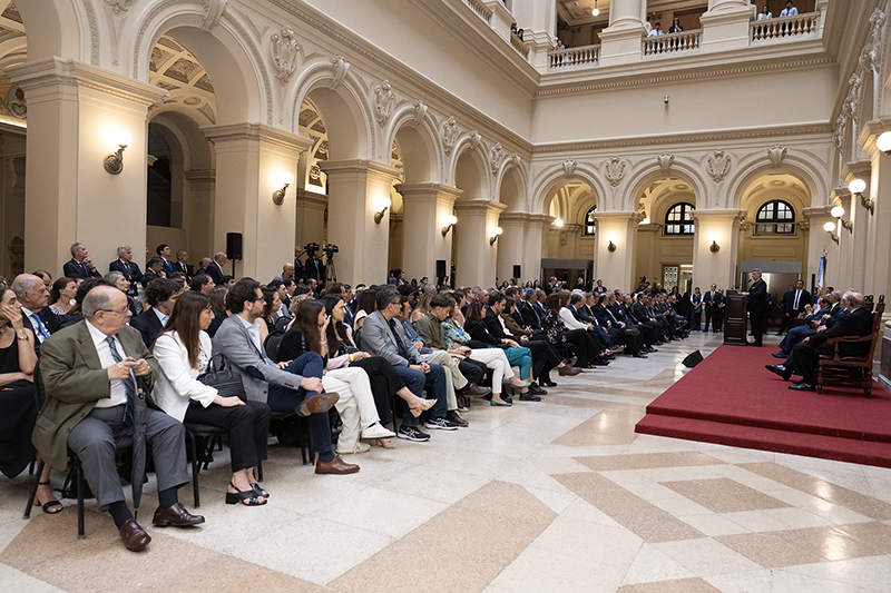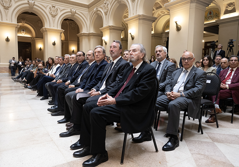El presidente de la Corte Suprema y del Consejo de la Magistratura, Horacio Rosatti, cerró el acto con un mensaje en el que calificó a la experiencia argentina como “un caso de justicia transicional ejemplar” a nivel mundial, y agregó: “Rendir cuentas con el pasado es una tarea compleja, más cuando ese pasado es reciente y tumultuoso”. Recordó que hasta entonces en el país la alternancia entre gobiernos constitucionales y de facto se había dado “sin rendir cuentas”, causando “una especie de amnesia artificial que generaba impunidad”.