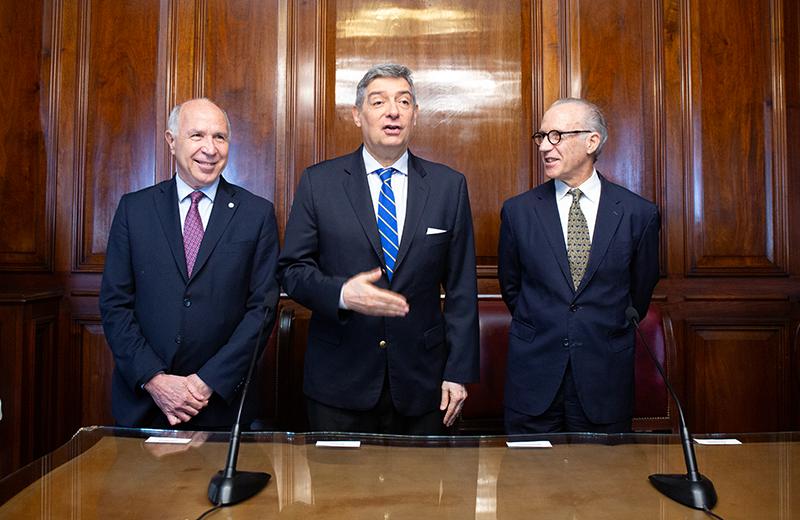 El presidente de la Corte Suprema de Justicia de la Nación y del Consejo de la Magistratura de la Nación, Horacio Rosatti; el vicepresidente del Tribunal, Carlos Rosenkrantz, el ministro Ricardo Lorenzetti, y José Claudio Escribano, presidente de la Comisión de Premios de ADEPA, encabezaron este jueves la entrega del Premio ADEPA-Corte Suprema de Justicia de la Nación.